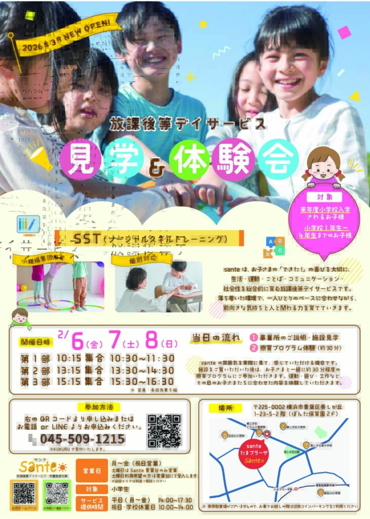 【参加者募集】放課後等デイサービスSante たまプラーザ 体験&見学会のお知らせ(2026年3月OPEN)